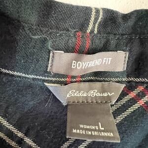 Eddie Bauer Boyfriend Fit Women Size Large Flannel Long Sleeve Button Up Shirt