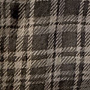 Outdoor-wear Eddie Bauer Boyfriend Relaxed Straight Leg Jeans in medium wash Gray with Gray Plaid Flannel Lining for winter warmth. 5 Pocket Denim Low rise, Cotton Poly Spandex stretch for fit and comfort.