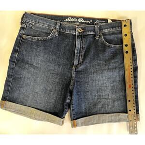 Eddie Bauer Boyfriend Shorts Womens 10 Blue Medium Wash Denim Low Rise Zip Fly