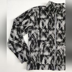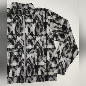 This soft Eddie Bauer jacket is great for fall into winter. Featuring a zipper front design and pockets. 100% polyester. Made in China. Machine washable.