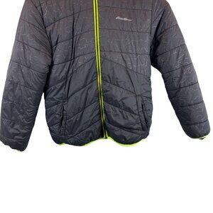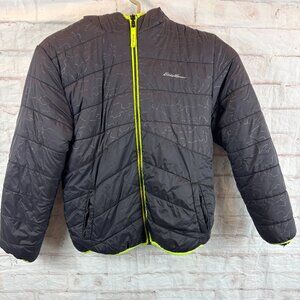 Eddie Bauer Boys M Black Insulated Reversible Fleece Hooded Winter Jacket