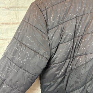 Eddie Bauer Boys M Black Insulated Reversible Fleece Hooded Winter Jacket. No size tag, Measures approx 19 inches across laid flat from under arm to under arm and approx 23 inches in length.