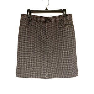 Eddie Bauer Brown Houndstooth Wool Blend Lined Academia Office Above Knee Skirt
