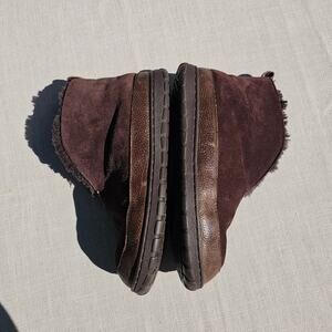 Eddie Bauer Brown Leather, Suede, Shearling Ankle Slippers Size 11