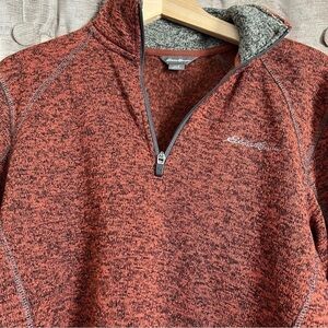 Eddie Bauer Burnt Orange Quarter Zip Fleece Lined Sweater Size Small