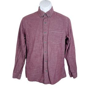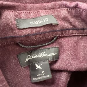 Eddie Bauer Button Down Shirt Men Small Burgundy Classic Fit Long Sleeve Casual