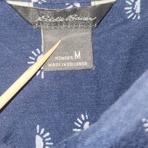 Keywords: Eddie Bauer, button down shirt, long sleeve shirt, womens shirt, sun print, casual top, navy shirt, medium shirt, cotton shirt, spring shirt, summer shirt, work shirt, office shirt, classic shirt, preppy