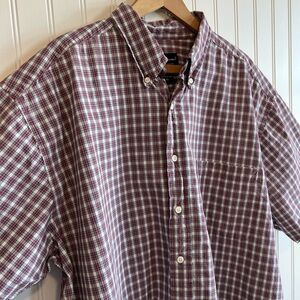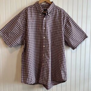 Eddie Bauer Button Down Short Sleeve Red Plaid Men's Size XL work shirt