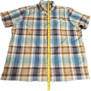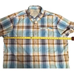 Eddie Bauer Button Down Short Sleeve Shirt Plaid Blue Cotton Men’s XXL Pre-own