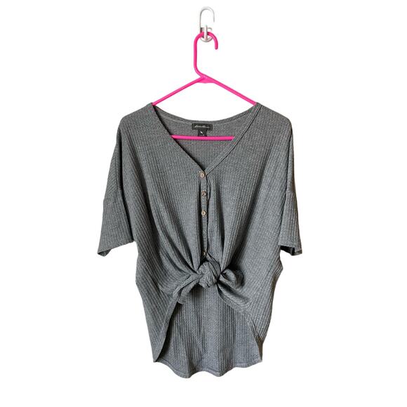Eddie Bauer Button Down Tie Knot Front Short Sleeved Gray Blouse- Size Medium