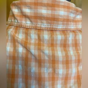 Eddie Bauer Button Down Women's Shirt L White Orange Gingham Check Short Sleeves