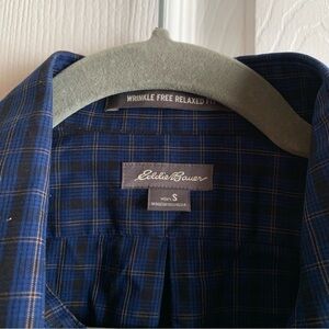 Eddie Bauer Button Shirt Long Sleeve Plaid Blue Wrinkle Free