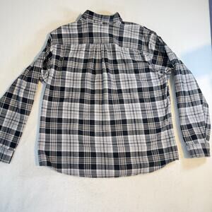 Eddie Bauer Button Shirt Men XL Classic Fit Flannel Black White Plaid 100 Cotton
