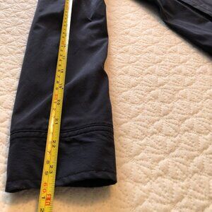 This Eddie Bauer women's button-up shirt is perfect for adventure travel or hiking. The navy blue shirt features a collared neckline and roll tab sleeves. Made with a lightweight and stretchy blend of polyester and spandex, this shirt is both comfortable and functional. It also has pockets for added convenience. The shirt is a size 6 and has a regular fit. The solid pattern and outdoor theme make it a great choice for casual occasions as well. Shirt features 1 inside pocket, 2 side zip pockets and 2 cover up chest pockets