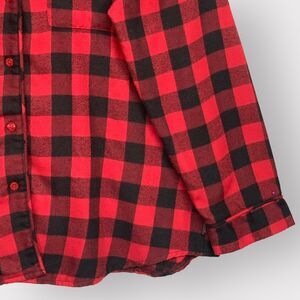 Eddie Bauer Button-Up Shirt Women L Red Plaid Curved Hem Flannel Pocket C69