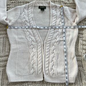 Eddie Bauer Cable Knit Soft Ivory Long Sleeve One Hook Cardigan Sweater