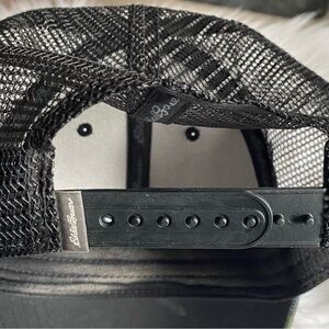 Stylish camo trucker hat by Eddie Bauer. Features a classic camouflage pattern with a black mesh back.
