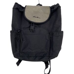 Eddie Bauer Canvas Backpack Cinch Drawstring Top Flap Closure Black