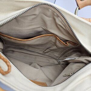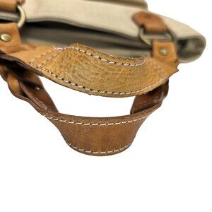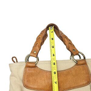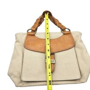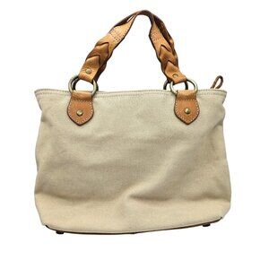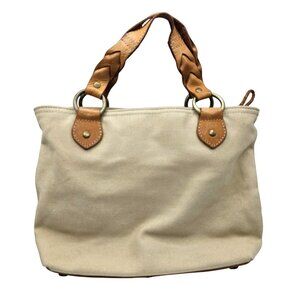 Eddie Bauer Canvas & Leather Small Tote Braided Double Handles Buckle Accent