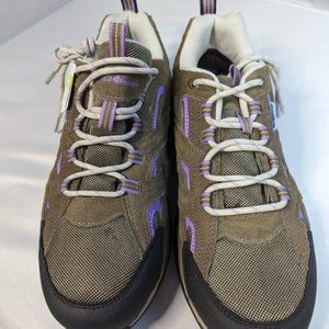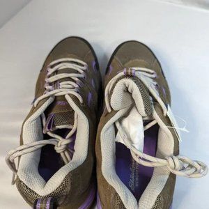 NWT Women's Eddie Bauer Canyon Low Hiking Shoes. Size 11 Med. Color - Tan/Brown/Purple. Water Resistant. Built in drainage. Grippy outsole. Cushioned support.