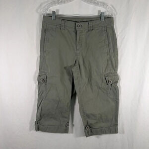Eddie Bauer Capri Women's 8 Green Mid Rise Pockets Button Zip 100% Cotton