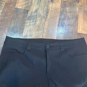 These Capri pants have a little stretched to them and are in great condition. The waist measures 17 inches across lying flat. The rise is 10 inches. The inseam measures 22 inches.