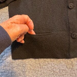 Eddie Bauer Cardigan Merino Wool Black Button-Front 3/4 Sleeve Pockets Size L