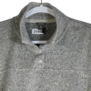 Eddie Bauer Cardigan Sweater Jacket Women Large Fleece Lined 1/4 Snap Pockets