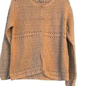 Eddie Bauer Cardigan Sweater Tan Woman’s Large Open Knit