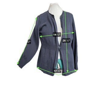 Eddie Bauer Cardigan Sweater Women XL Navy Cotton One-Button Ribbed at waist