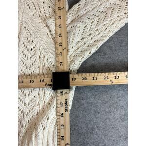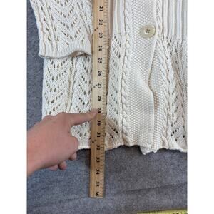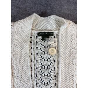Eddie Bauer Cardigan Sweater Womens 2XW Cream Open Knit Duster Boho Preppy NWOT