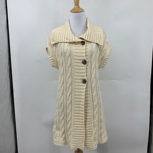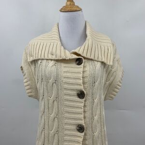 Eddie Bauer Cardigan Womens L Large Cream Merino Wool Blend Chunky Cable Knit