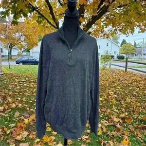 Eddie Bauer Cashmere Blend Quarter Zip Up Grey Sweater Pullover Size Large