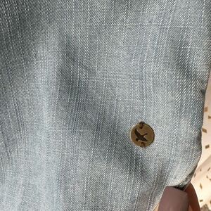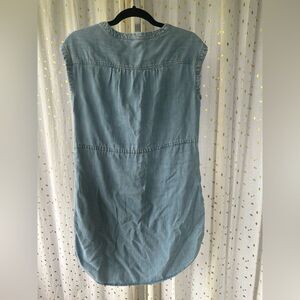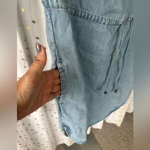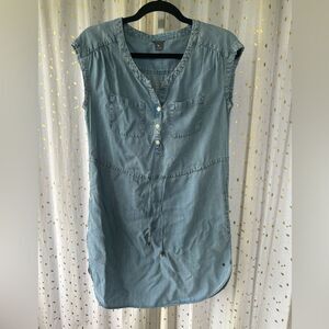 Eddie Bauer Chambray Button Front V-neck Waist Cinched Tie Shirt Dress Petite 2