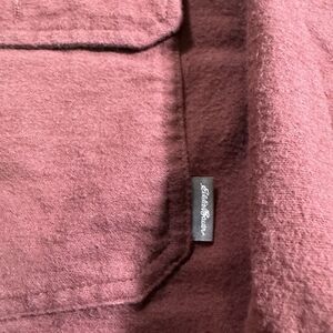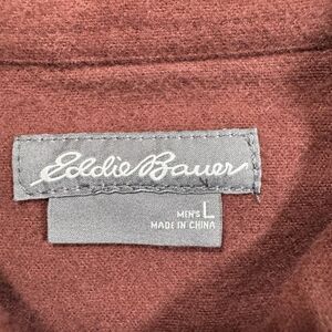 Eddie Bauer Chamois Shirt L Men Burgundy Button Collar Pocket Long Sleeve Vtg