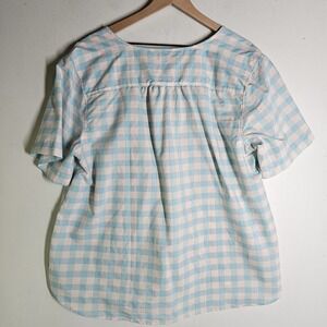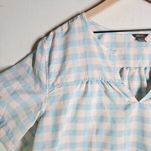 Eddie Bauer Check Blouse Women's 2X Blue Short Sleeve Notched Neckline Top