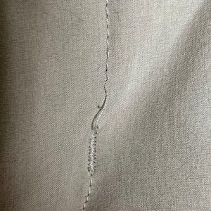 In very good used condition condition - there is one loose stitch on the front fly (see photo). No stains, hem wear, or odors. Cord stops are intact. Internal label is flat and unfaded.