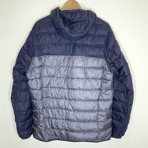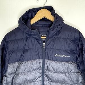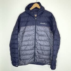 Eddie Bauer Cirruslite Hooded Down Puffer Jacket Mens Large EB650 Navy Blue Gray
