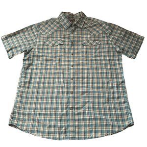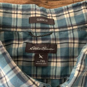 Eddie Bauer Classic Fit Men’s XL Tall Western Blue Plaid Short Sleeve Pearl Snap