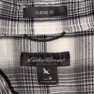 Eddie Bauer Classic Fit Plaid Button-Up Shirt Men’s M - Gray White Short Sleeve