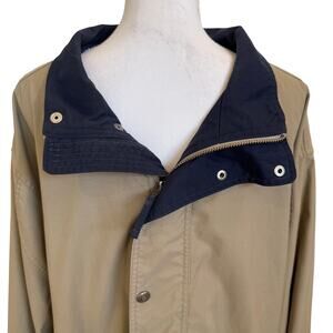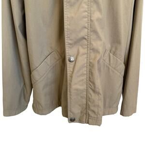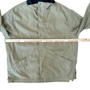 Eddie Bauer Coat Jacket Men's Large Tan Navy Chore Barn Full Zip Snap Pockets