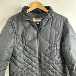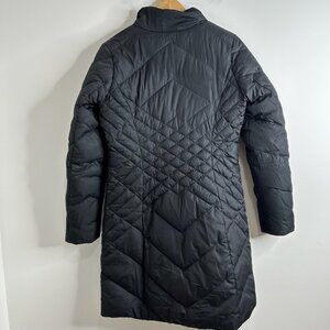 Eddie Bauer Coat Jacket Womens M Tall Black Long Quilted Down Puffer Full Zip