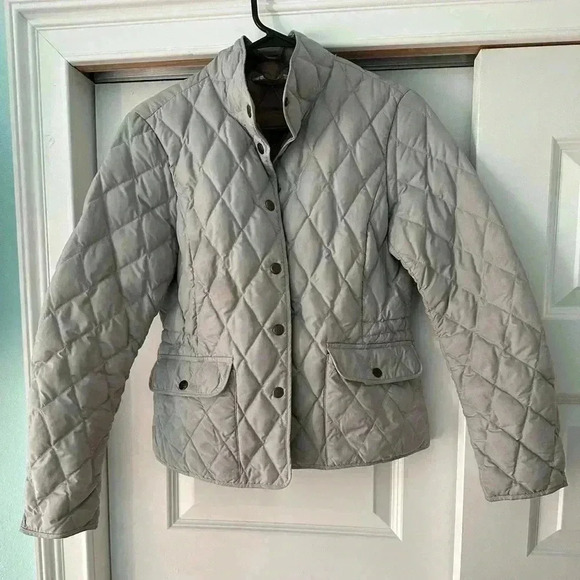 Eddie Bauer Coat Women's Quilted 100% Goose Down Puffer Jacket Gray Snap Petite Small EB 550