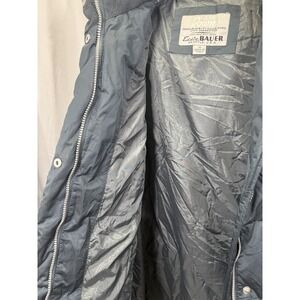 Eddie Bauer Coat Womens Medium Gray Goose Down Puffer Parka Hooded Faux Fur Trim