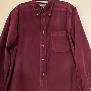 Eddie Bauer Corduroy 100% Cotton Button Up Shirt Maroon M