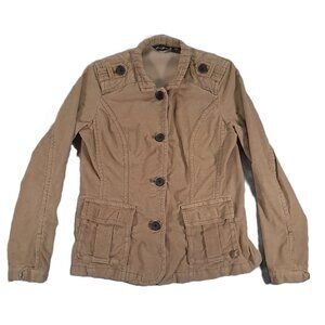 Eddie Bauer Corduroy Jacket Women Medium Tan Button Up Shoulder Straps Pockets