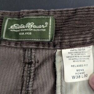Keywords: Eddie Bauer, corduroy pants, mens pants, relaxed fit, pleated pants, brown pants, wide wale corduroy, casual pants, work pants, vintage pants, classic style, comfortable pants, W38 L30