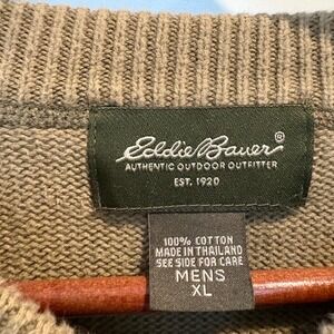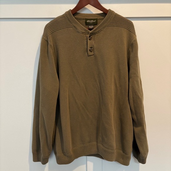 eddie bauer sweater, henley knit pullover, cotton fall sweater, olive brown mens sweater, rugged casual knitwear, vintage eddie bauer xl, y2k, outdoor