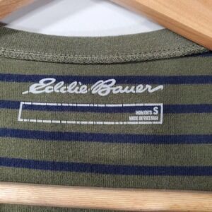 Eddie Bauer Cotton Knit Stretch Fitted V-Neck Short Sleeve Shirt Green Blue Size Small