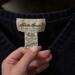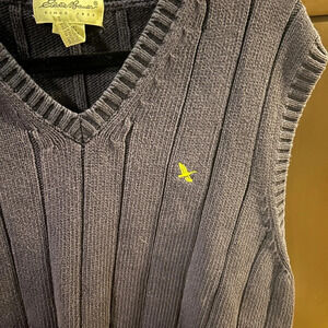 Eddie Bauer Cotton Knit Sweater Vest Navy Blue/Yellow